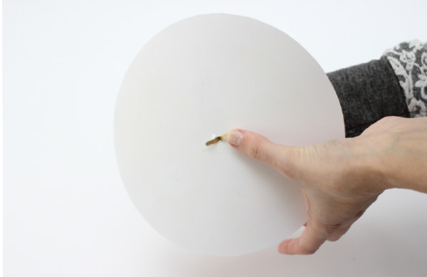 Teraz použite sponku so vzorom a šípku k prepichnutiu diery uprostred náladových hodín. Ak je to príliš ťažké, nechajte svojich rodičov, aby vám pomohli.